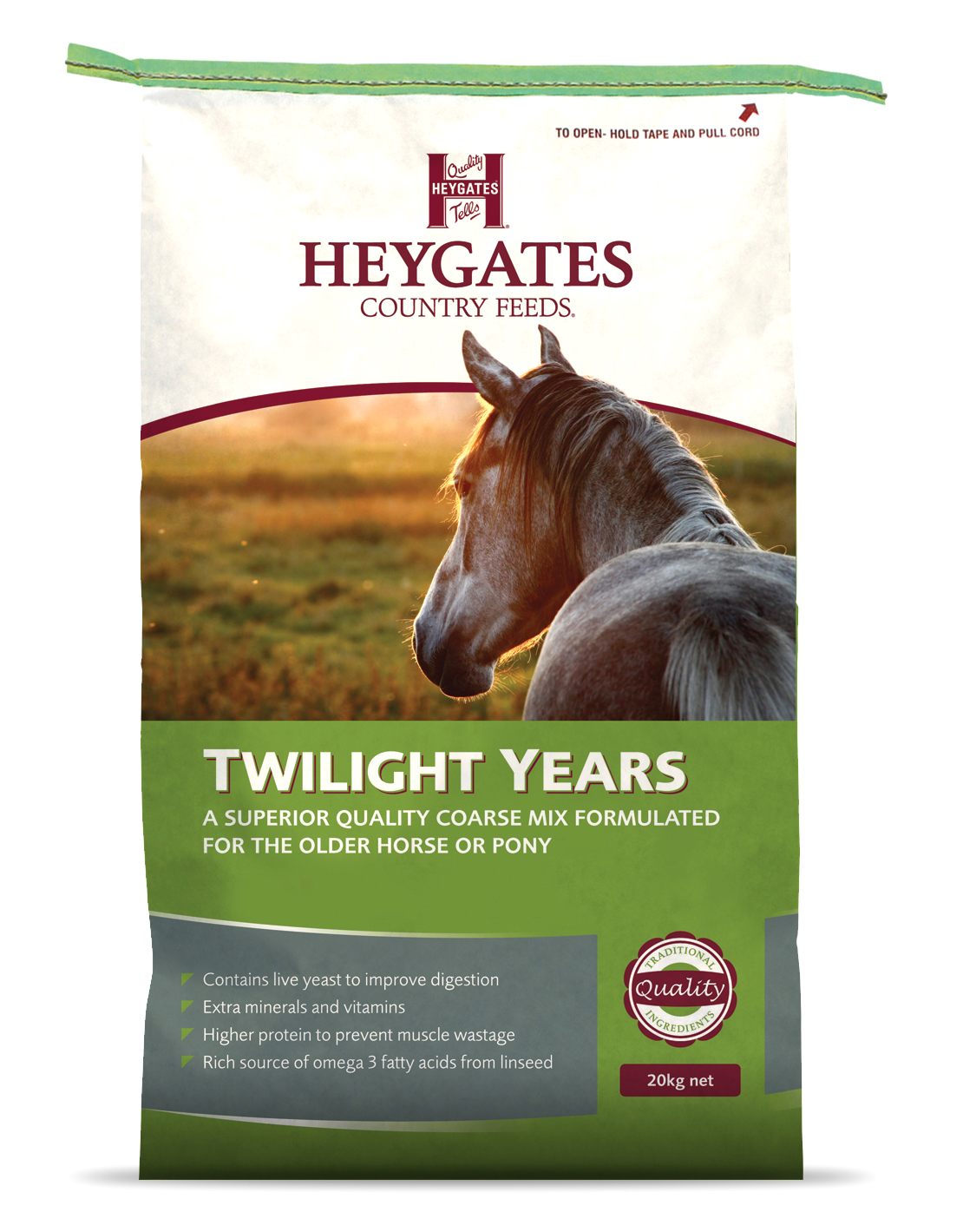 A superior quality coarse mixture for the older horse. Twilight Years is balanced for protein, energy, minerals and vitamins to supply the particular nutritional requirements of the older animal.
